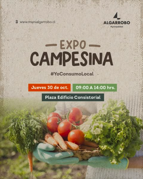 La Expo Campesina de Algarrobo regresa este jueves 30 de octubre con una nueva versión que reunirá a productores rurales de San José, El Yeco y Tunquén, quienes ofrecerán una variada muestra de alimentos y productos elaborados localmente. La cita será, como es habitual, en la Plaza del Edificio Consistorial, desde las 9 de la mañana.